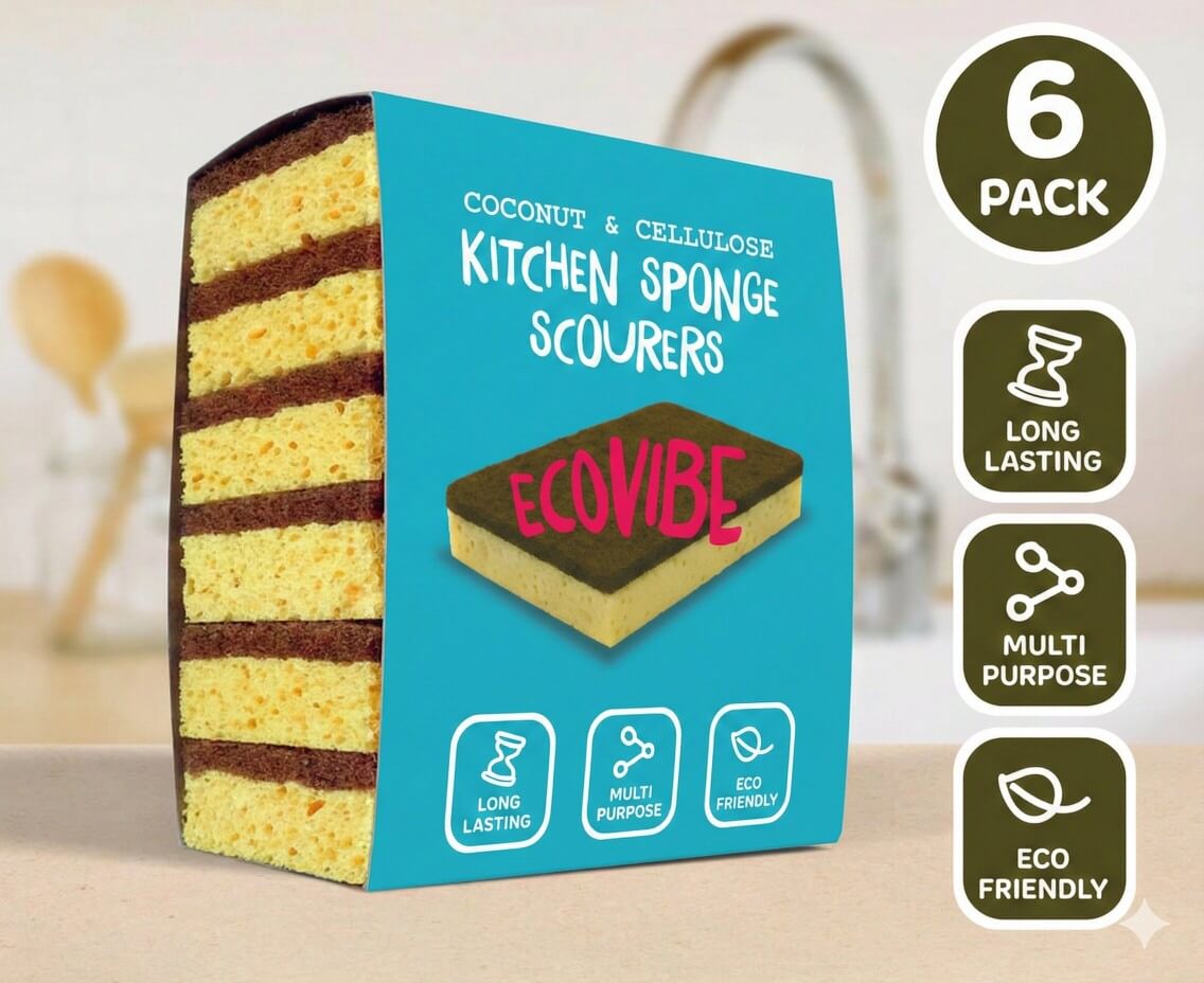 Each sponge combines a super absorbent cellulose base with a tough coconut fibre scourer, perfect for tackling grease, grime, and baked-on food across all your kitchen surfaces. From pans and plates to sinks and countertops, they get the job done with ease.